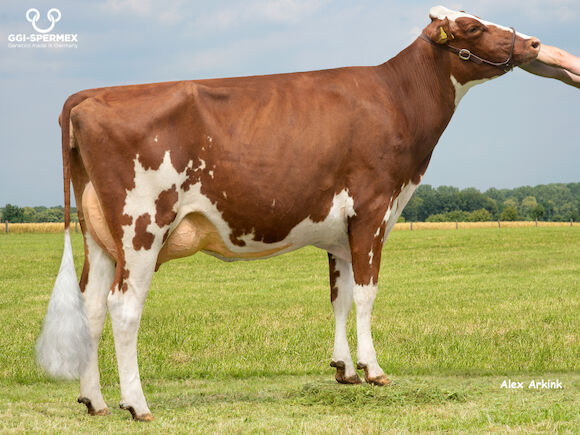 Sanderij GINGER domineert al 5 draaien lang de Duitse roodbont lijst. Ook in de Nederlandse interbull lijst is hij de aanvoerder. Ginger (Gywer x Salvatore) steeg nogmaals voor productie: + 2.990 kg met -0,48% vet en -0,19% eiwit brengen hem op +601 Inet. Zijn dochters zijn grotendeels 2e kalfs en imponeren met topproducties. Ginger fokt rijzige vaarzen met beste uiers en prima gezondheid.