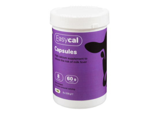 Een hoog calcium supplement dat het risico op melkziekte rond het afkalven van koeien vermindert. Easycal® levert 60g calcium per applicatie, dat is 40% meer dan de meeste calciumbolussen. Het wordt gemakkelijk geabsorbeerd, is niet-irriterend en is 12 uur zeer effectief. De capsules zijn toe te dienen zijn met een applicator.
