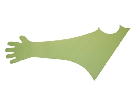 Inseminatie- en onderzoekshandschoenen lang model met schouderband tegen afglijden.