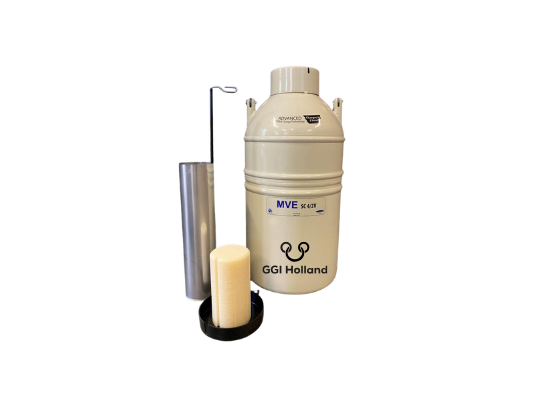 Dryshipper/ container met een inhoud van 4 liter. Deze dryshipper wordt veelal gebruikt als container om embryo’s, runder- en/of paardensperma te verzenden. Zie ook bijbehorende mushroom.