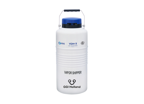 Dryshipper/ container met een inhoud van 3 liter. Deze dryshipper wordt veelal gebruikt als container om embryo’s, runder- en/of paardensperma te verzenden. Zie ook bijbehorende mushroom.