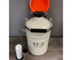 Stikstof container met een inhoud van 3 liter. Deze container bevat 6 kleine canisters. Wordt veelal gebruikt als ‘loopvat’.
